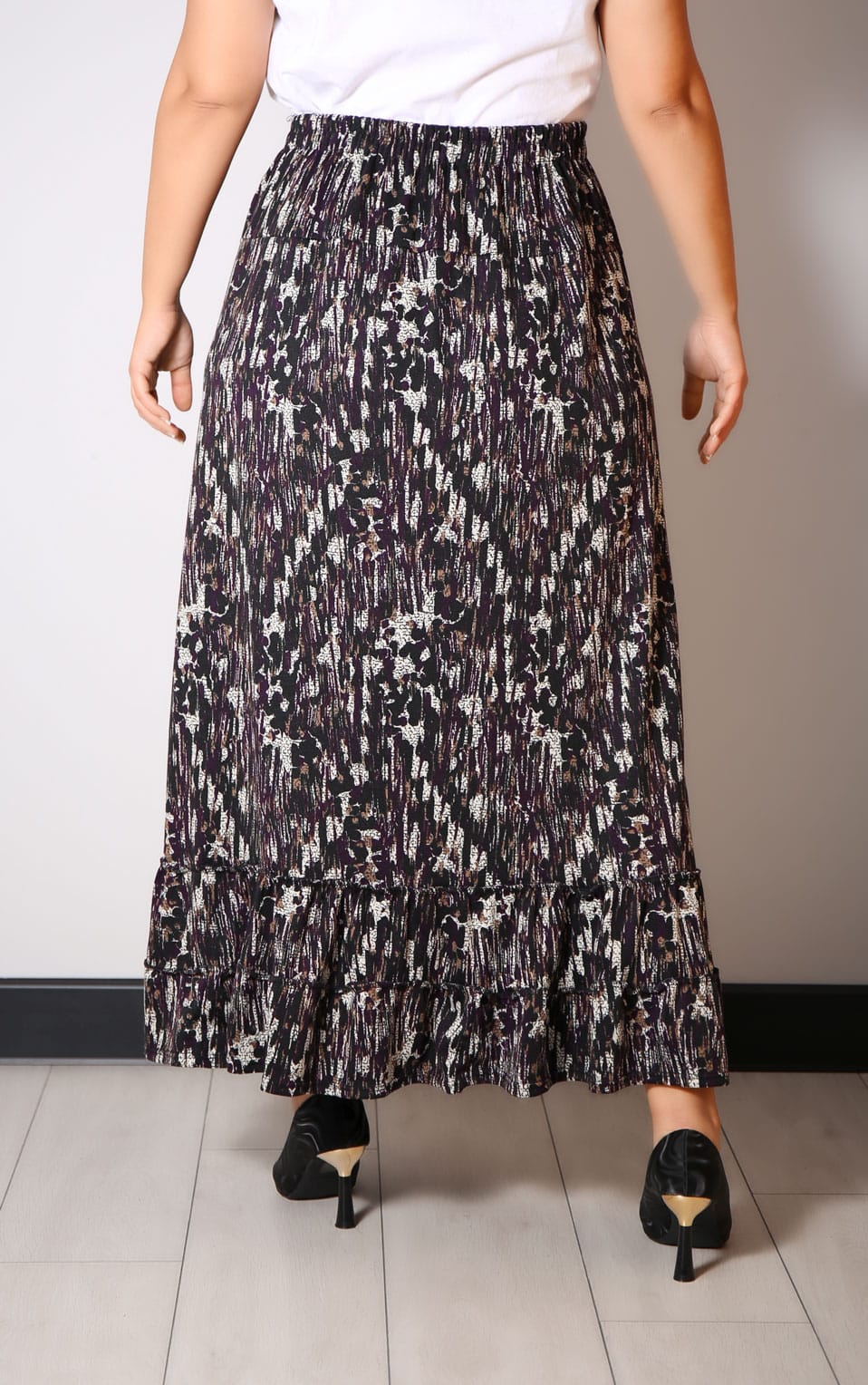 - Fusta lunga cu doua volane accesorizata cu nasturi