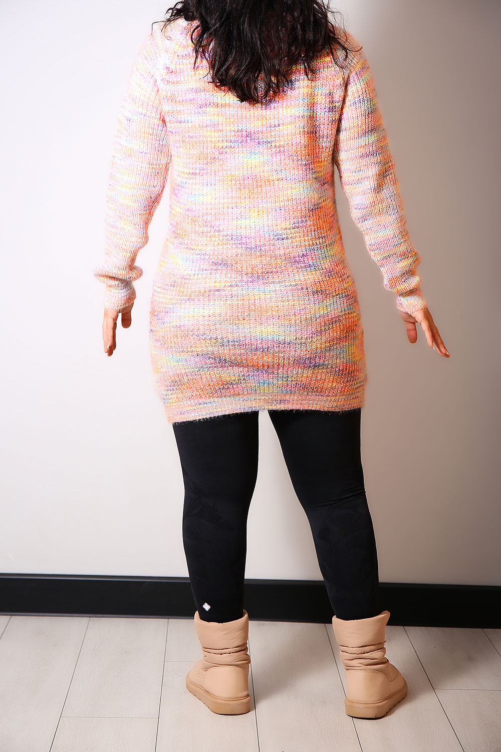 Plover Lung conceput din tricot cu insertii stralucitoare mansete over size accesorizat cu cordon in talie. Marime universala se potriveste pt marimile M,L,XL,2XL.