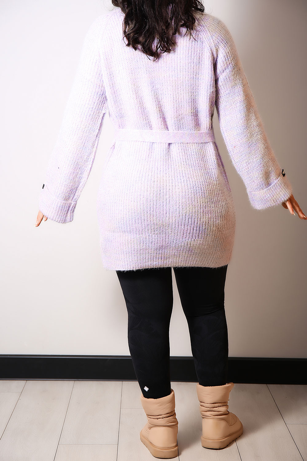 Plover Lung conceput din tricot cu insertii stralucitoare mansete over size accesorizat cu cordon in talie. Marime universala se potriveste pt marimile M,L,XL,2XL.